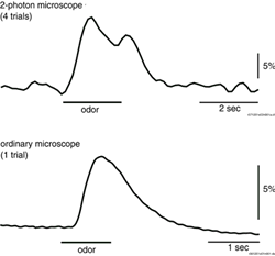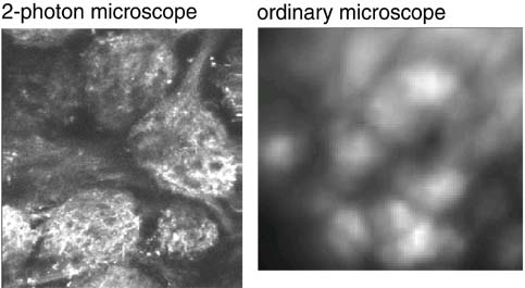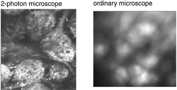 2-photon microscope and an ordinary fluorescence microscope with a