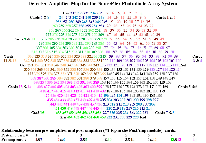 Color Coded Detector-Amplifier Map for the NeuroPDA Photodiode Array System (Click on image to enlarge)